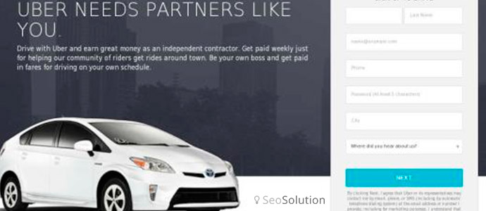 Не всегда под тестированием мы подразумеваем использование новых ключевых запросов, рекламных кампаний, нужно помнить и о тестировании новых лендинговых страниц. В этом случае компания из Сан-Франциско Uber является отличным примером. С начала января они тестируют три типа посадочных страниц.