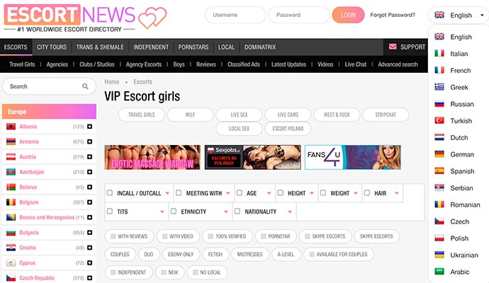 Приклад успішного міжнародного порталу як єдиного сайту: escortnews.eu